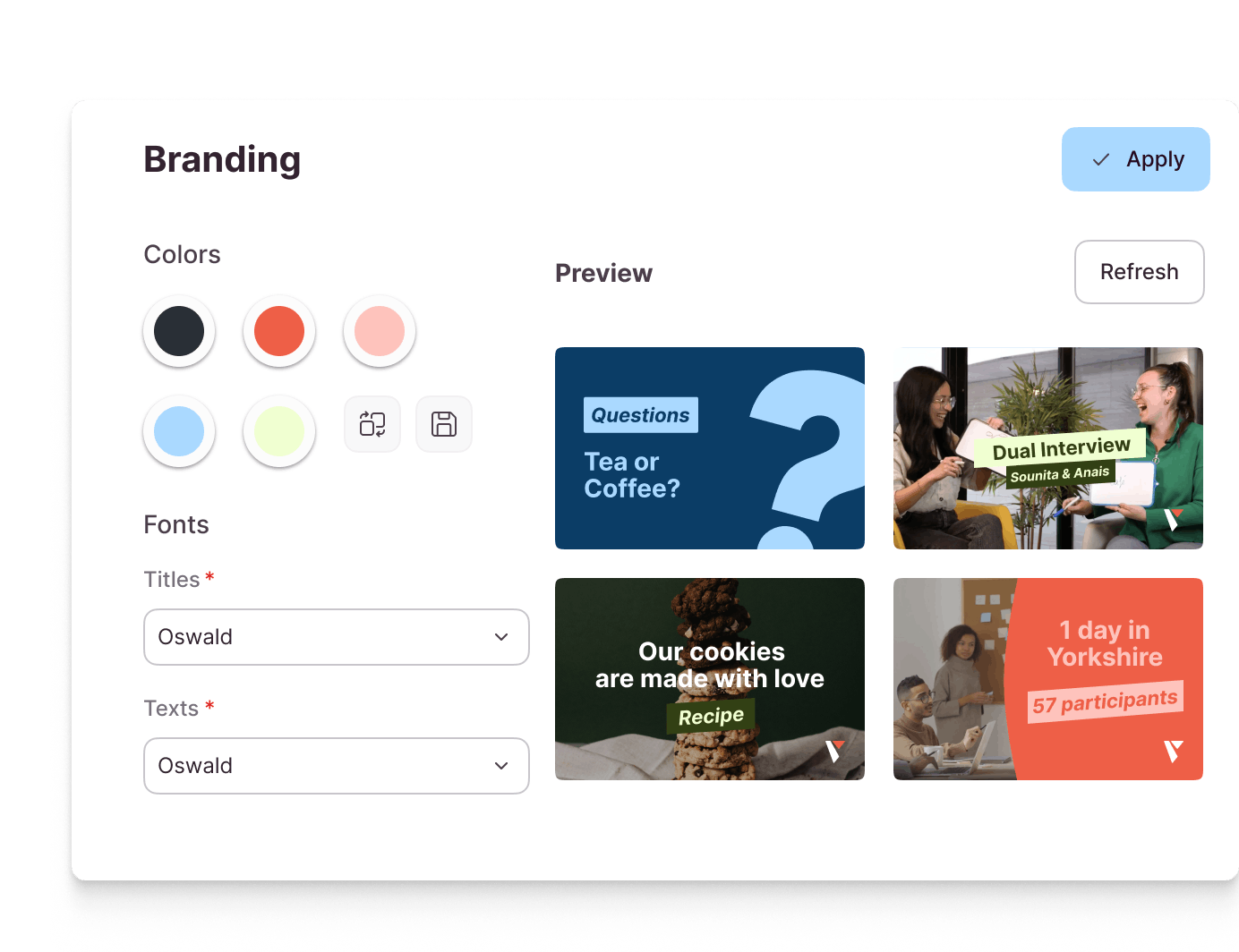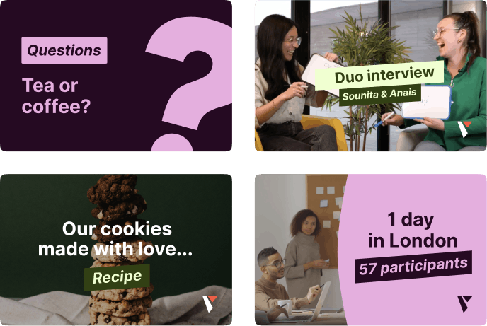Create videos that reflect your brand's graphic charter. Use your logo, colors, fonts, and icons to increase the spontaneous awareness.